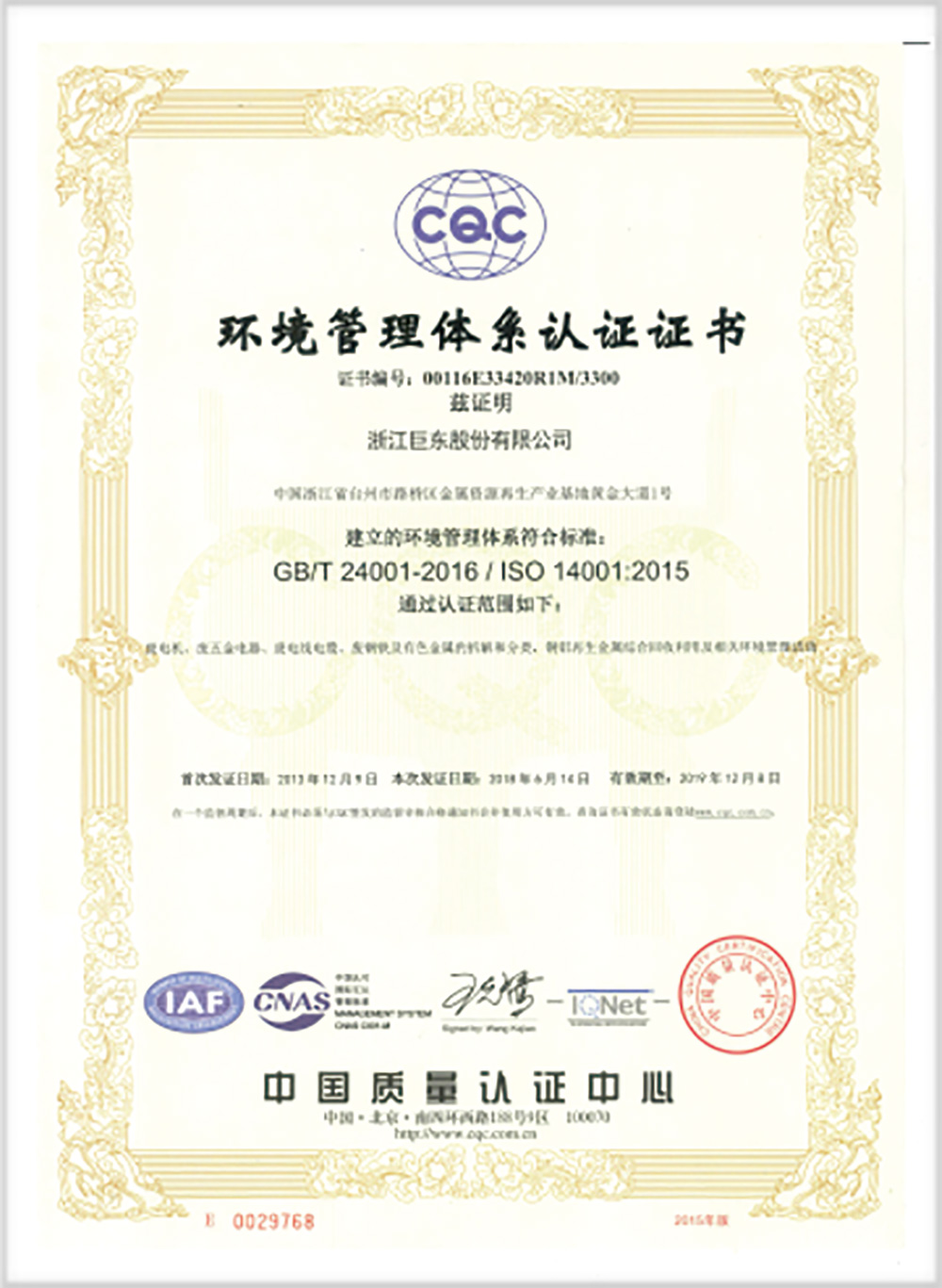• 2017 AAA contract abiding and trustworthy enterprise in Zhejiang Province